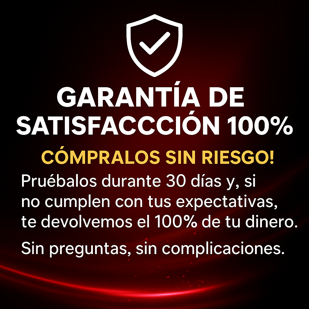 Tienes 3 meses de garantía por defectos de fábrica y además una garantía de satisfacción de 30 días: si no cumplen tus expectativas, te devolvemos tu dinero.